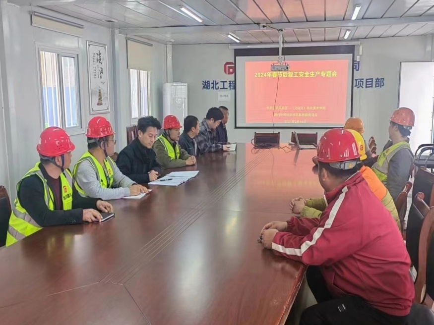 圖為華新美院項目開展2024年節(jié)后復(fù)工復(fù)產(chǎn)安全生產(chǎn)專題會